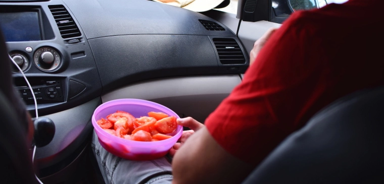 Where possible, try to avoid any messy, crumbly foods that will leave your car in a state. Also, while there are no specific laws targeting eating and driving, eating and drinking at the wheel are considered to be distractions under the highway code.