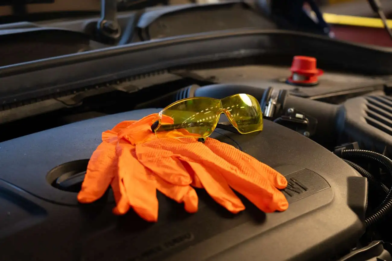 2. Open the bonnet and put on gloves and safety glasses, to prevent coming into contact with battery acid.