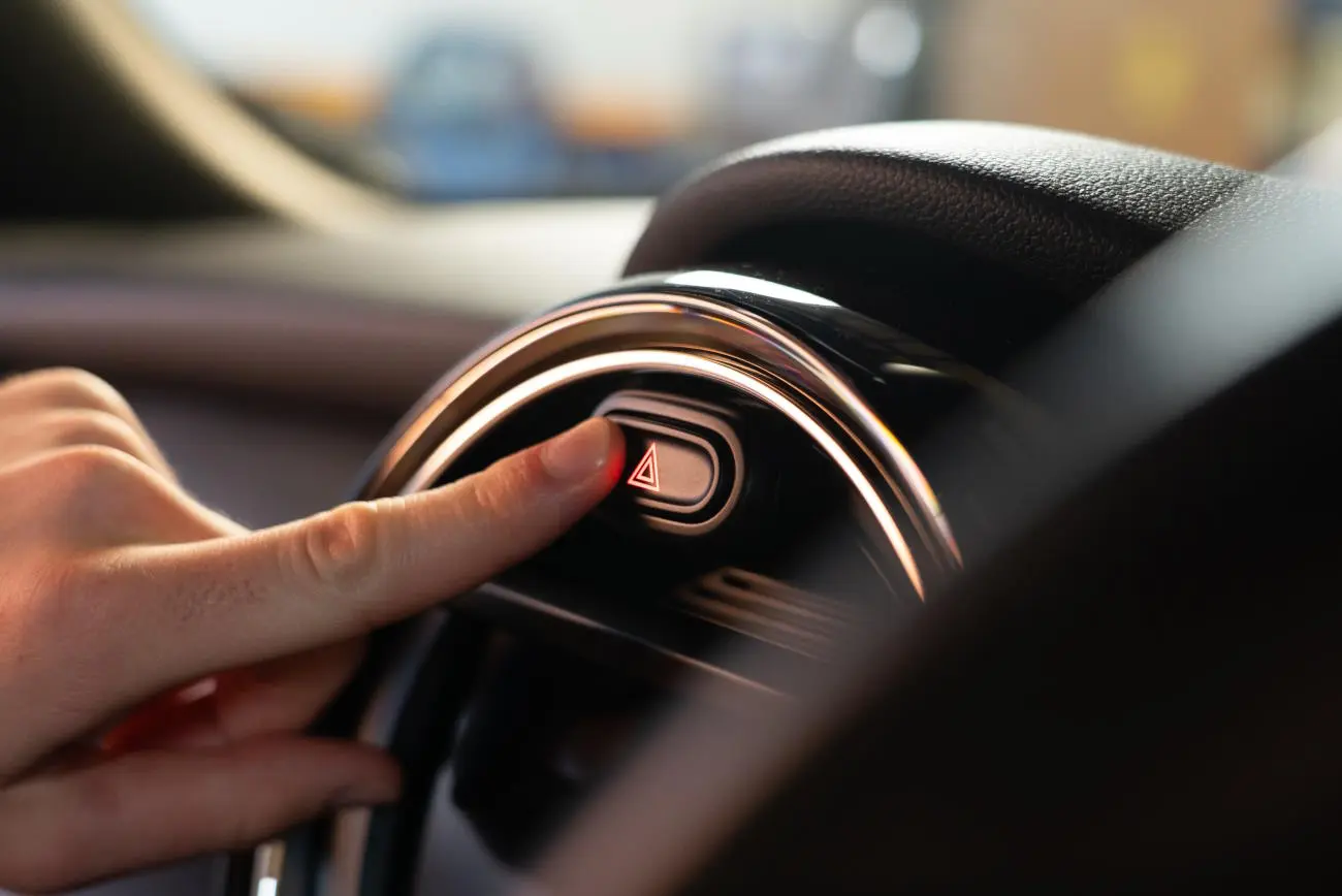 2. Turn on hazard lights and gather the relevant equipment and tools.