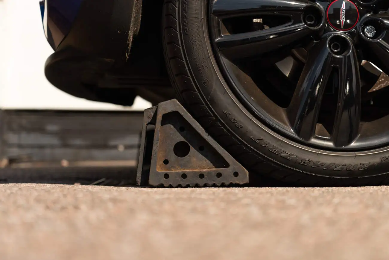 - Position wheel chocks, placing the chocks on the opposite wheel to the flat tyre.