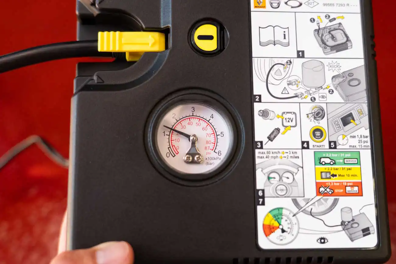 If you choose to pump your tyres at home, there are some important pointers to follow. Portable pumps either come as electrically-powered or manual options. With electric pumps, you usually have to plug them into the car’s cigarette lighter port, turn them on, and select a target pressure. Turn them off again before attaching them to the tyre valve stem (so the motor doesn’t keep running) and switch them back on when the valve is connected properly.